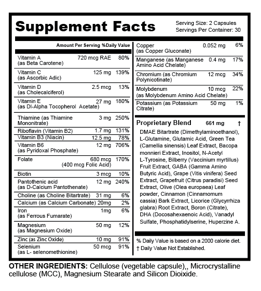 Our Cognitive Formula is designed to support various aspects of brain health and cognitive function. Formulated with a blend of natural ingredients, this supplement may help enhance focus and concentration, may help improve memory and recall, and may help support overall mental clarity. Incorporating a cognitive formula into your daily routine may help individuals looking to optimize their cognitive performance. As with any dietary supplement, it's advisable to consult with a healthcare professional before use.